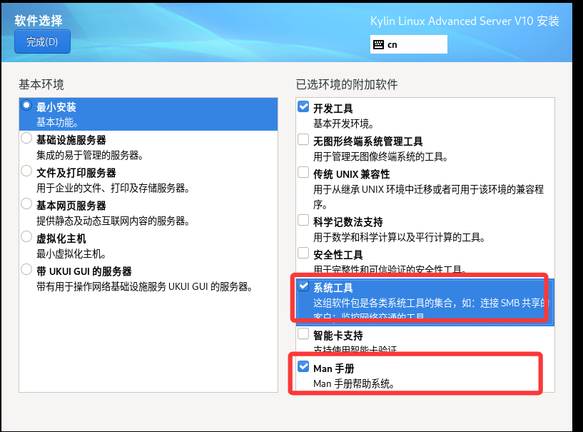 选最小安装,标准,调试工具,开发工具,系统工具,Man手册(省下安装很多软件)